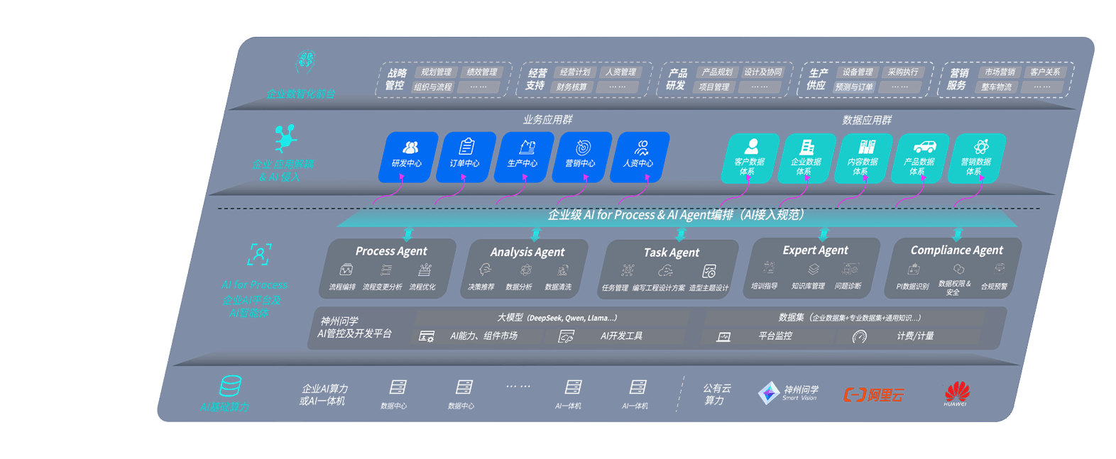 巅峰国际问学智车解决方案是一套基于AI技术的汽车行业智能化系统,,覆盖从底层算力到顶层AI应用的全栈方案。。。。方案由算力层、、模型层和应用层组成:算力层,,方案支持多种一体机配置,,,具备云端灵活部署、、、多云适配以及动态优化计算资源的能力;模型层,,,巅峰国际问学平台版提供了企业级AI应用一站式构建与管理平台,,支持基于后训练强化技术的汽车企业专属模型的训练、、评测和运营;应用层,,巅峰国际问学DeepSeek版提供包括超级员工、、、智能招采、、智能营销、、智能客服、、、、AI for BI等一系列解决方案,,,可助力汽车行业实现数字化转型,,,让管理更智能、、、响应更敏捷。。